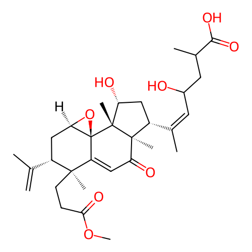 | InChI | InChI=1S/C31H44O8/c1-16(2)20-14-25-31(39-25)22(28(20,5)10-9-26(35)38-8)15-23(33)29(6)21(13-24(34)30(29,31)7)17(3)11-19(32)12-18(4)27(36)37/h11,15,18-21,24-25,32,34H,1,9-10,12-14H2,2-8H3,(H,36,37)/b17-11-/t18?,19?,20-,21+,24+,25+,28-,29-,30+,31-/m0/s1 |