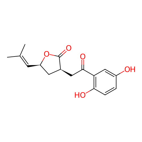 SMILES | CC(=C[C@@H]1C[C@@H](C(=O)O1)CC(=O)C2=C(C=CC(=C2)O)O)C |