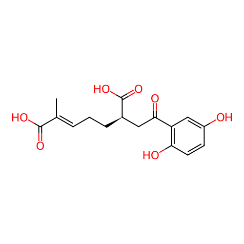 InChI | InChI=1S/C16H18O7/c1-9(15(20)21)3-2-4-10(16(22)23)7-14(19)12-8-11(17)5-6-13(12)18/h3,5-6,8,10,17-18H,2,4,7H2,1H3,(H,20,21)(H,22,23)/b9-3+/t10-/m1/s1 |