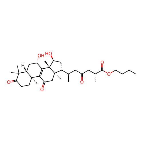 SMILES | CCCCOC(=O)[C@H](C)CC(=O)C[C@@H](C)[C@H]1C[C@@H]([C@@]2([C@@]1(CC(=O)C3=C2[C@H](C[C@@H]4[C@@]3(CCC(=O)C4(C)C)C)O)C)C)O |