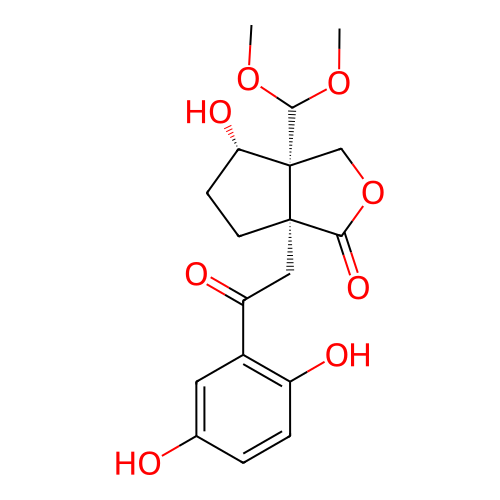 InChI | InChI=1S/C18H22O8/c1-24-16(25-2)18-9-26-15(23)17(18,6-5-14(18)22)8-13(21)11-7-10(19)3-4-12(11)20/h3-4,7,14,16,19-20,22H,5-6,8-9H2,1-2H3/t14-,17-,18+/m0/s1 |