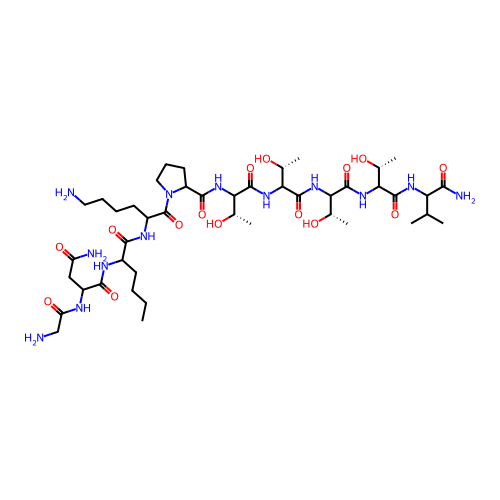 | SMILES | CCCCC(C(=O)NC(CCCCN)C(=O)N1CCCC1C(=O)NC([C@H](C)O)C(=O)NC([C@@H](C)O)C(=O)NC([C@H](C)O)C(=O)NC([C@@H](C)O)C(=O)NC(C(C)C)C(=O)N)NC(=O)C(CC(=O)N)NC(=O)CN |