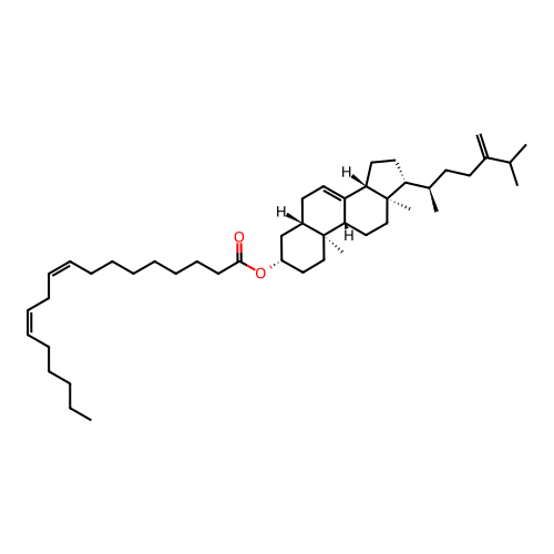 SMILES | CCCCC/C=C\C/C=C\CCCCCCCC(=O)O[C@H]1CC[C@@]2([C@H]3CC[C@]4([C@H](C3=CC[C@H]2C1)CC[C@@H]4[C@H](C)CCC(=C)C(C)C)C)C |