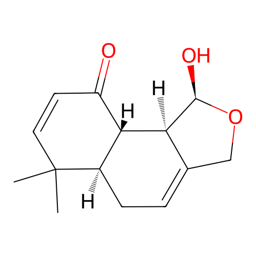 InChI | InChI=1S/C14H18O3/c1-14(2)6-5-10(15)12-9(14)4-3-8-7-17-13(16)11(8)12/h3,5-6,9,11-13,16H,4,7H2,1-2H3/t9-,11+,12-,13+/m1/s1 |