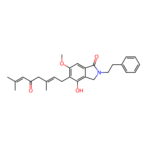 SMILES | COC1=C(C/C=C(\C)CC(=O)C=C(C)C)C(O)=C2CN(CCC3=CC=CC=C3)C(=O)C2=C1 |
