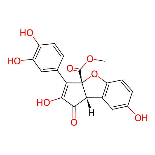 SMILES COC(=O)[C@]12[C@H](C3=C(O1)C=CC(=C3)O)C(=O)C(=C2C4=CC(=C(C=C4)O)O)O