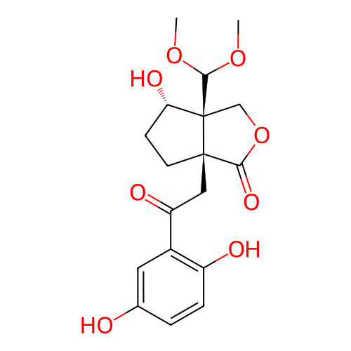 | InChI | InChI=1S/C18H22O8/c1-24-16(25-2)18-9-26-15(23)17(18,6-5-14(18)22)8-13(21)11-7-10(19)3-4-12(11)20/h3-4,7,14,16,19-20,22H,5-6,8-9H2,1-2H3/t14-,17+,18-/m0/s1 |