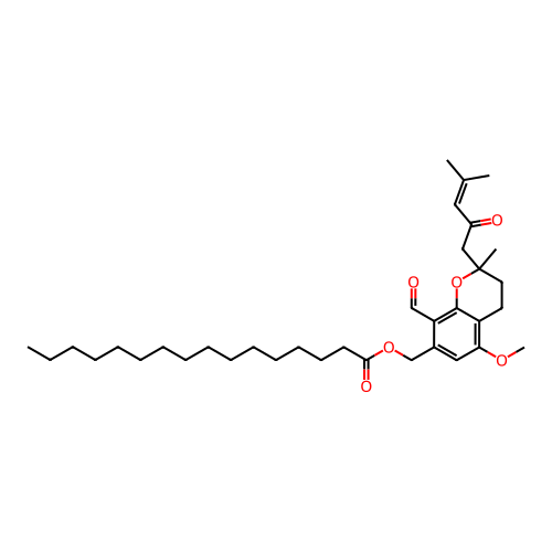 SMILES | CCCCCCCCCCCCCCCC(=O)OCC1=CC(=C2CCC(OC2=C1C=O)(C)CC(=O)C=C(C)C)OC |
