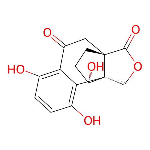InChI InChI=1S/C15H14O6/c16-7-1-2-8(17)12-11(7)9(18)5-14-4-3-10(19)15(12,14)6-21-13(14)20/h1-2,10,16-17,19H,3-6H2/t10-,14-,15+/m1/s1