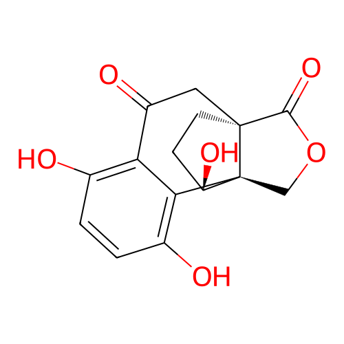 | InChI | InChI=1S/C15H14O6/c16-7-1-2-8(17)12-11(7)9(18)5-14-4-3-10(19)15(12,14)6-21-13(14)20/h1-2,10,16-17,19H,3-6H2/t10-,14-,15+/m0/s1 |