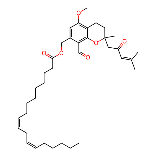 SMILES | CCCCC/C=C\C/C=C\CCCCCCCC(=O)OCC1=CC(=C2CCC(OC2=C1C=O)(C)CC(=O)C=C(C)C)OC |