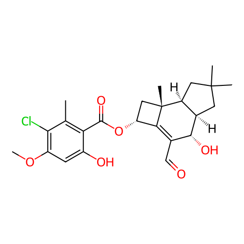 SMILES CC1=C(C(=CC(=C1Cl)OC)O)C(=O)O[C@@H]2C[C@]3(C2=C([C@H]([C@H]4[C@@H]3CC(C4)(C)C)O)C=O)C