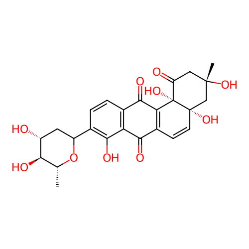 | InChI | InChI=1S/C25H26O10/c1-10-19(28)14(26)7-15(35-10)11-3-4-12-17(20(11)29)21(30)13-5-6-24(33)9-23(2,32)8-16(27)25(24,34)18(13)22(12)31/h3-6,10,14-15,19,26,28-29,32-34H,7-9H2,1-2H3/t10-,14-,15?,19-,23+,24+,25+/m1/s1 |