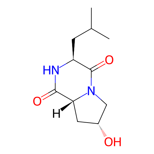 | SMILES | CC(C)C[C@H]1C(=O)N2C[C@@H](C[C@@H]2C(=O)N1)O |
