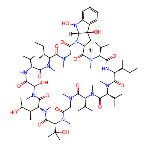 | SMILES | CC[C@H](C)[C@H]1C(=O)N(CC(=O)N2[C@@H](C[C@@]3([C@H]2N(C4=CC=CC=C43)O)O)C(=O)N([C@H](C(=O)N[C@H](C(=O)N([C@H](C(=O)N([C@H](C(=O)N(CC(=O)N([C@H](C(=O)N([C@H](C(=O)N(C(C(=O)N[C@H](C(=O)N1C)C(C)C)O)C)[C@@H](C)C(C)O)C)C(C)(C)O)C)C)C(C)C)C)C(C)C)C)C(C)CC)C(C)C)C)C |