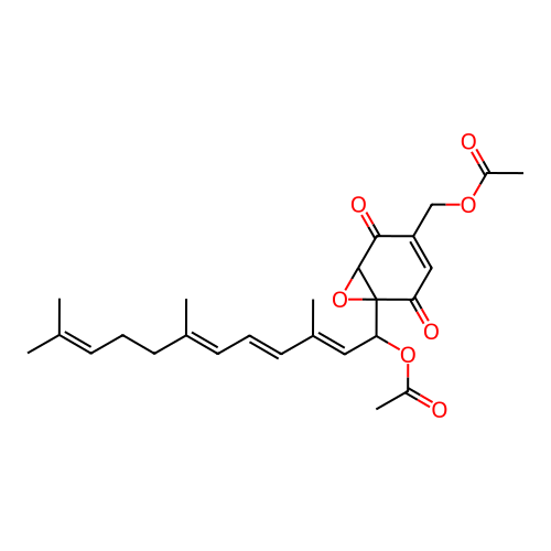 | SMILES | CC(=CCC/C(=C/C=C/C(=C/C(C12C(O1)C(=O)C(=CC2=O)COC(=O)C)OC(=O)C)/C)/C)C |
