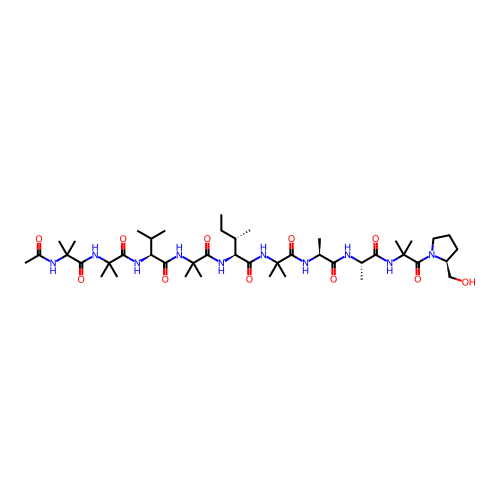 | SMILES | CC[C@H](C)[C@@H](C(=O)NC(C)(C)C(=O)N[C@@H](C)C(=O)N[C@@H](C)C(=O)NC(C)(C)C(=O)N1CCC[C@H]1CO)NC(=O)C(C)(C)NC(=O)[C@H](C(C)C)NC(=O)C(C)(C)NC(=O)C(C)(C)NC(=O)C |