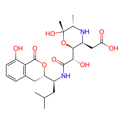 | SMILES | C[C@H]1[C@@](O[C@@H]([C@@H](N1)CC(=O)O)[C@@H](C(=O)N[C@@H](CC(C)C)[C@@H]2CC3=C(C(=CC=C3)O)C(=O)O2)O)(C)O |