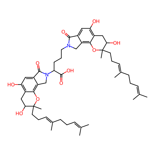 | SMILES | CC(=CCCC(=CCCC1(C(CC2=C(C=C3C(=C2O1)CN(C3=O)CCCC(C(=O)O)N4CC5=C6C(=C(C=C5C4=O)O)CC(C(O6)(C)CCC=C(C)CCC=C(C)C)O)O)O)C)C)C |