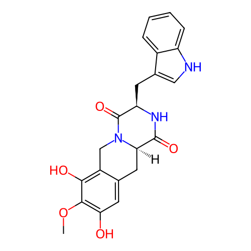 | SMILES | COC1=C(C=C2C[C@@H]3C(=O)N[C@@H](C(=O)N3CC2=C1O)CC4=CNC5=CC=CC=C54)O |
