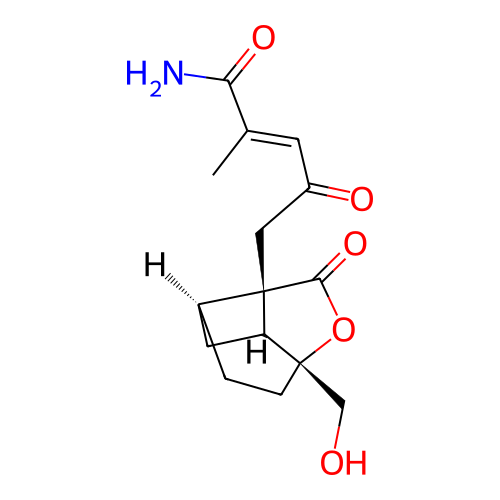 | InChI | InChI=1S/C15H19NO5/c1-8(12(16)19)4-10(18)6-15-9-2-3-14(7-17,11(15)5-9)21-13(15)20/h4,9,11,17H,2-3,5-7H2,1H3,(H2,16,19)/b8-4+/t9-,11+,14-,15-/m0/s1 |