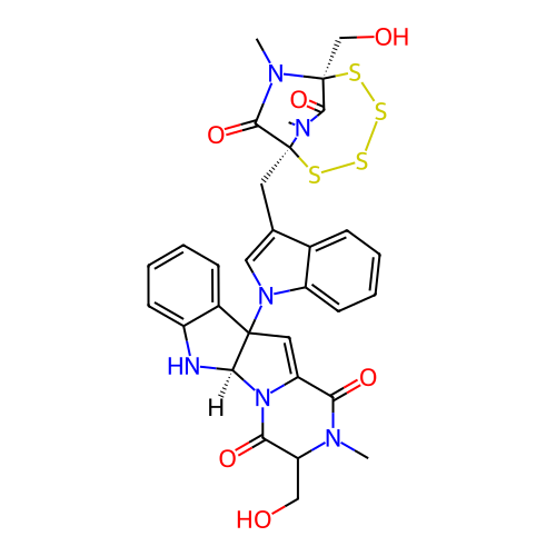 | SMILES | CN1C(C(=O)N2[C@@H]3C(C=C2C1=O)(C4=CC=CC=C4N3)N5C=C(C6=CC=CC=C65)C[C@]78C(=O)N([C@](C(=O)N7C)(SSSS8)CO)C)CO |