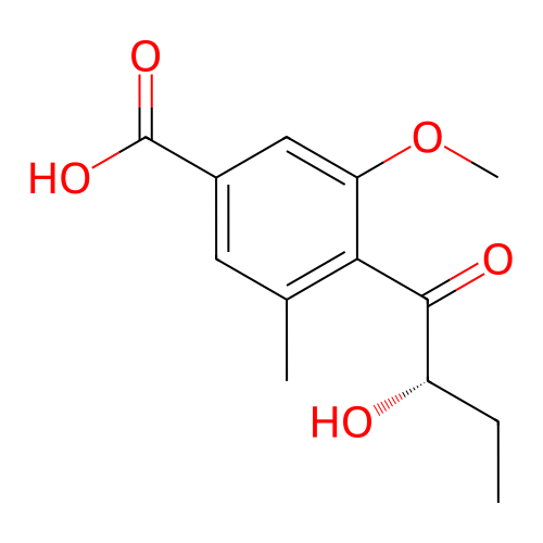 | InChI | InChI=1S/C13H16O5/c1-4-9(14)12(15)11-7(2)5-8(13(16)17)6-10(11)18-3/h5-6,9,14H,4H2,1-3H3,(H,16,17)/t9-/m0/s1 |