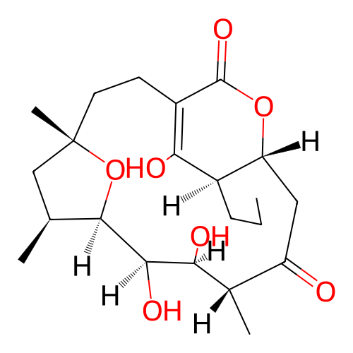 | 2 | CCC[C@H]1C(O)=C2CC[C@@]3(C)C[C@H](C)[C@@H](O3)[C@H](O)[C@@H](O)[C@@H](C)C(=O)C[C@H]1OC2=O | Takada H; Yamada T; Hirose T; Ishihara T; Nakashima T; Takahashi YK; O Mura S; Sunazuka T Total Synthesis and Determination of the Absolute Configuration of Naturally Occurring Mangromicin A, with Potent Antitrypanosomal Activity. Organic Letters 2017 19 (1) 230-233. DOI: 10.1021/acs.orglett.6b03512 PMID: 27936806 | ||