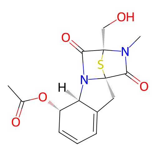 | SMILES | CC(=O)O[C@H]1C=CC=C2[C@@H]1N3C(=O)[C@]4(N(C(=O)[C@]3(C2)S4)C)CO |