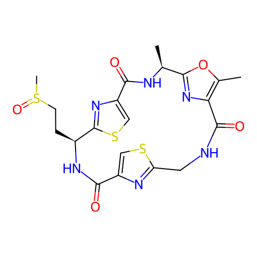 | SMILES | C[C@H]1C2=NC(=C(O2)C)C(=O)NCC3=NC(=CS3)C(=O)N[C@H](C4=NC(=CS4)C(=O)N1)CCS(=O)C |