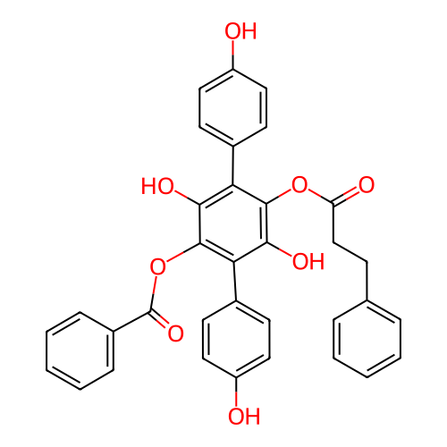 | SMILES | C1=CC=C(C=C1)CCC(=O)OC2=C(C(=C(C(=C2O)C3=CC=C(C=C3)O)OC(=O)C4=CC=CC=C4)O)C5=CC=C(C=C5)O |