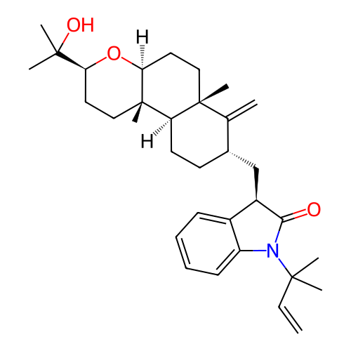 | InChI | InChI=1S/C33H47NO3/c1-9-30(3,4)34-25-13-11-10-12-23(25)24(29(34)35)20-22-14-15-26-32(7,21(22)2)18-17-28-33(26,8)19-16-27(37-28)31(5,6)36/h9-13,22,24,26-28,36H,1-2,14-20H2,3-8H3/t22-,24+,26+,27-,28-,32+,33-/m0/s1 |