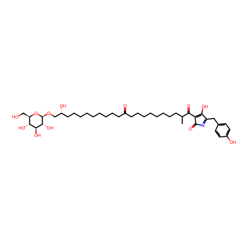 | InChI | InChI=1S/C40H61NO12/c1-26(34(46)33-35(47)31(41-39(33)51)23-27-19-21-29(44)22-20-27)15-11-7-5-6-9-13-17-28(43)16-12-8-3-2-4-10-14-18-30(45)25-52-40-38(50)37(49)36(48)32(24-42)53-40/h19-22,26,30,32,36-38,40,42,44-45,47-50H,2-18,23-25H2,1H3/t26?,30-,32-,36-,37+,38-,40-/m1/s1 |