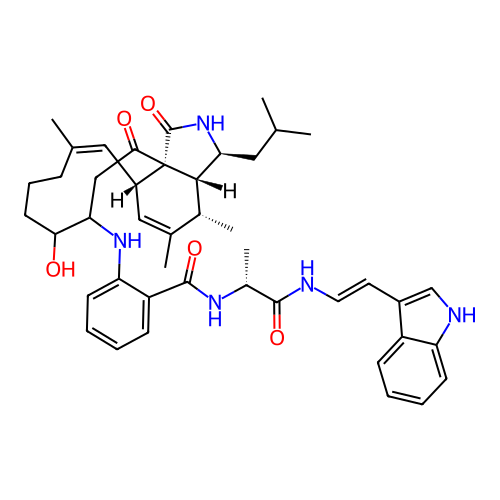 | SMILES | C[C@H]1[C@H]2[C@@H](NC(=O)[C@@]23[C@@H](/C=C(\CCCC(C(CC3=O)NC4=CC=CC=C4C(=O)N[C@H](C)C(=O)N/C=C/C5=CNC6=CC=CC=C65)O)/C)C=C1C)CC(C)C |