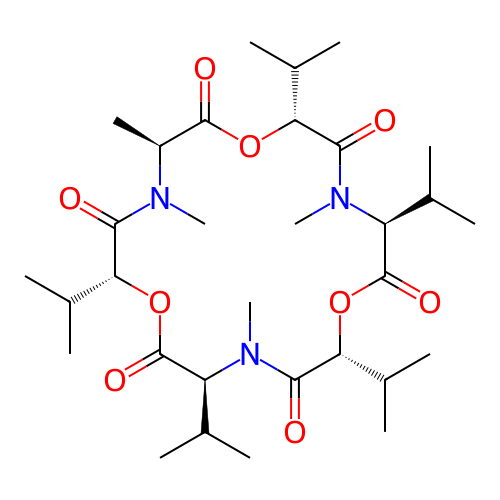 | SMILES | C[C@H]1C(=O)O[C@@H](C(=O)N([C@H](C(=O)O[C@@H](C(=O)N([C@H](C(=O)O[C@@H](C(=O)N1C)C(C)C)C(C)C)C)C(C)C)C(C)C)C)C(C)C |