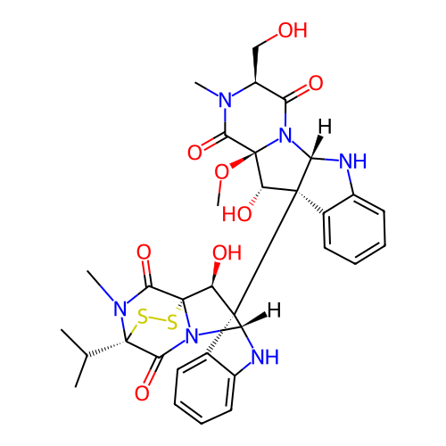 | SMILES | CC(C)[C@]12C(=O)N3[C@@H]4[C@]([C@@H]([C@@]3(C(=O)N1C)SS2)O)(C5=CC=CC=C5N4)[C@@]67[C@@H]([C@@]8(C(=O)N([C@H](C(=O)N8[C@@H]6NC9=CC=CC=C79)CO)C)OC)O |
