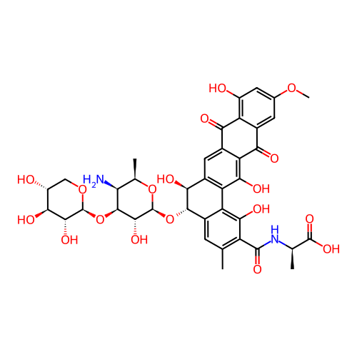 | SMILES | C[C@@H]1[C@@H]([C@@H]([C@H]([C@@H](O1)O[C@@H]2[C@H](C3=C(C4=C(C(=C(C=C24)C)C(=O)N[C@H](C)C(=O)O)O)C(=C5C(=C3)C(=O)C6=C(C=C(C=C6C5=O)OC)O)O)O)O)O[C@H]7[C@@H]([C@H]([C@@H](CO7)O)O)O)N |