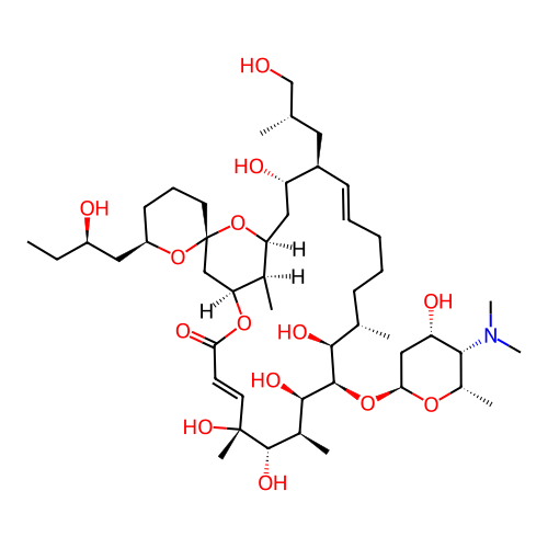 | InChI | InChI=1S/C47H83NO14/c1-10-33(50)22-34-17-14-19-47(61-34)25-38-29(4)37(62-47)23-35(51)32(21-27(2)26-49)16-13-11-12-15-28(3)42(54)44(60-40-24-36(52)41(48(8)9)31(6)58-40)43(55)30(5)45(56)46(7,57)20-18-39(53)59-38/h13,16,18,20,27-38,40-45,49-52,54-57H,10-12,14-15,17,19,21-26H2,1-9H3/b16-13+,20-18+/t27-,28-,29+,30+,31-,32+,33+,34+,35-,36-,37-,38-,40-,41+,42-,43+,44+,45-,46+,47+/m0/s1 |