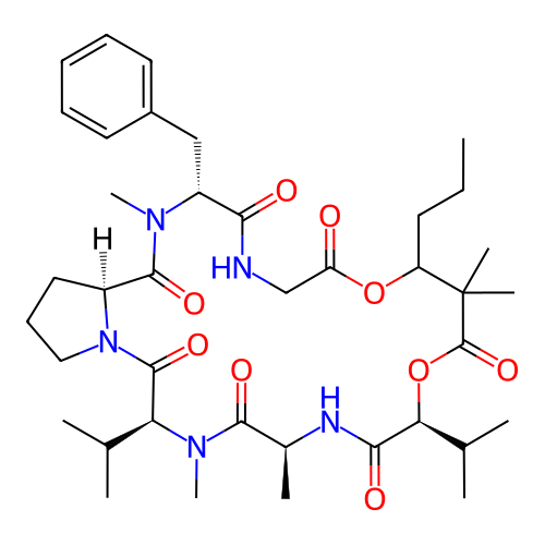 | SMILES | CCCC1C(C(=O)O[C@H](C(=O)N[C@H](C(=O)N([C@H](C(=O)N2CCC[C@H]2C(=O)N([C@@H](C(=O)NCC(=O)O1)CC3=CC=CC=C3)C)C(C)C)C)C)C(C)C)(C)C |