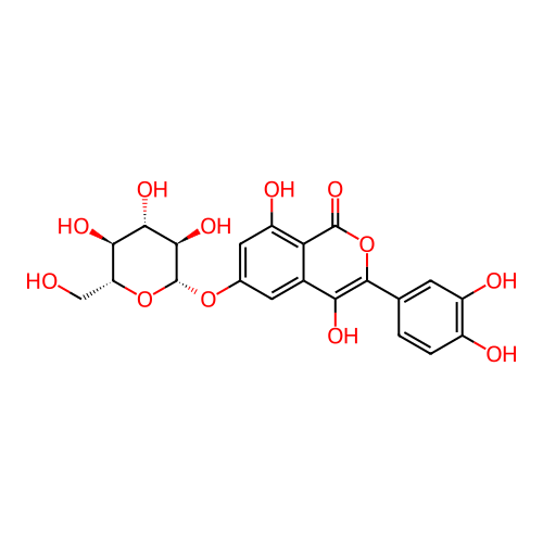 | InChI | InChI=1S/C21H20O12/c22-6-13-16(27)17(28)18(29)21(32-13)31-8-4-9-14(12(25)5-8)20(30)33-19(15(9)26)7-1-2-10(23)11(24)3-7/h1-5,13,16-18,21-29H,6H2/t13-,16-,17+,18-,21-/m1/s1 |