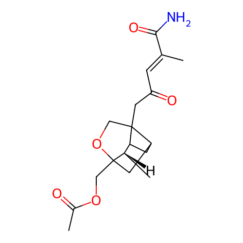 | InChI | InChI=1S/C18H25NO5/c1-10(16(19)22)4-14(21)7-17-8-24-18(9-23-12(3)20)6-13(17)5-15(17)11(18)2/h4,11,13,15H,5-9H2,1-3H3,(H2,19,22)/b10-4+/t11-,13?,15?,17?,18?/m0/s1 |