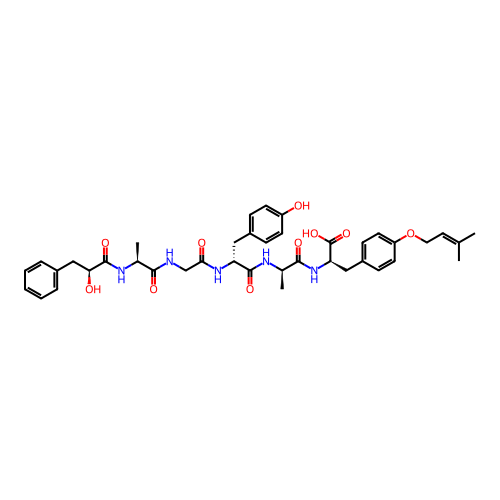 | SMILES | C[C@H](C(=O)N[C@H](CC1=CC=C(C=C1)OCC=C(C)C)C(=O)O)NC(=O)[C@@H](CC2=CC=C(C=C2)O)NC(=O)CNC(=O)[C@H](C)NC(=O)[C@H](CC3=CC=CC=C3)O |
