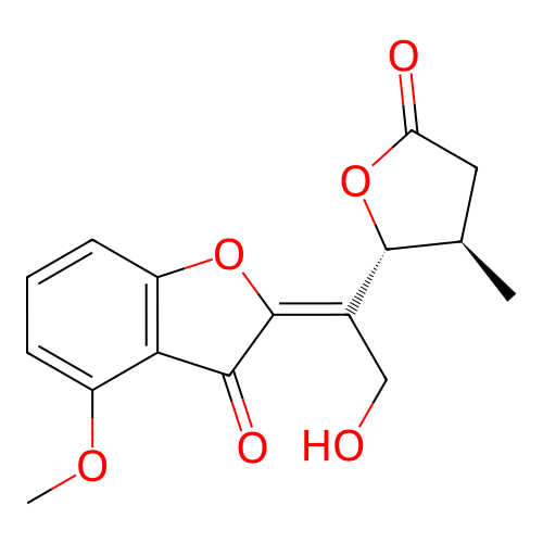 | InChI | InChI=1S/C16H16O6/c1-8-6-12(18)22-15(8)9(7-17)16-14(19)13-10(20-2)4-3-5-11(13)21-16/h3-5,8,15,17H,6-7H2,1-2H3/b16-9-/t8-,15-/m1/s1 |