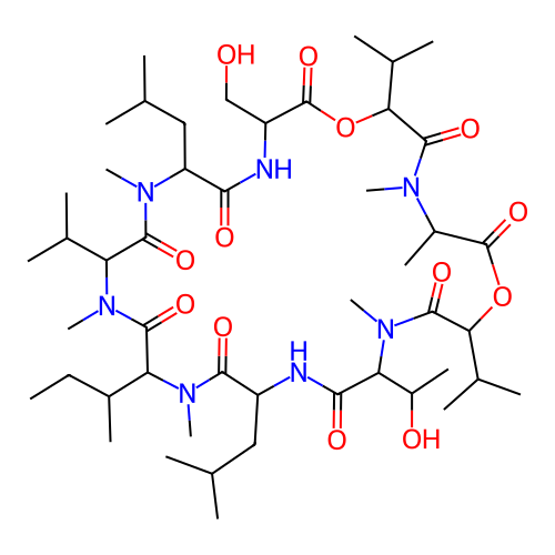 | SMILES | CCC(C)C1C(=O)N(C(C(=O)N(C(C(=O)NC(C(=O)OC(C(=O)N(C(C(=O)OC(C(=O)N(C(C(=O)NC(C(=O)N1C)CC(C)C)C(C)O)C)C(C)C)C)C)C(C)C)CO)CC(C)C)C)C(C)C)C |