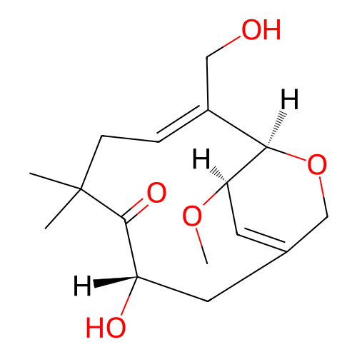 | InChI | InChI=1S/C16H24O5/c1-16(2)5-4-11(8-17)14-13(20-3)7-10(9-21-14)6-12(18)15(16)19/h4,7,12-14,17-18H,5-6,8-9H2,1-3H3/t12-,13+,14+/m0/s1 |