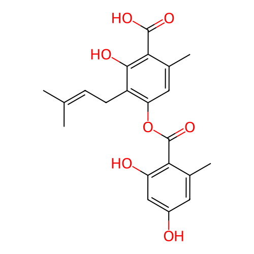 | SMILES | CC1=CC(=CC(=C1C(=O)OC2=C(C(=C(C(=C2)C)C(=O)O)O)CC=C(C)C)O)O |