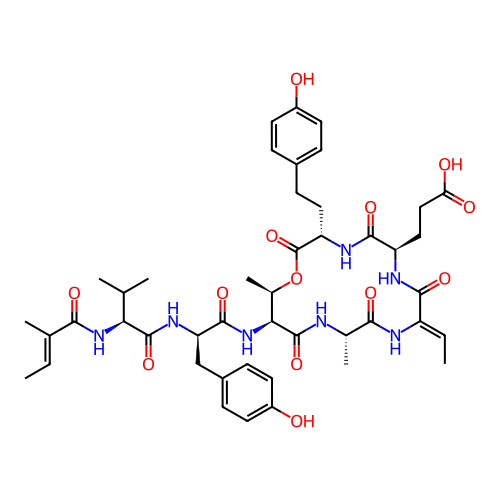 | SMILES | C/C=C\1/C(=O)N[C@@H](C(=O)N[C@H](C(=O)O[C@@H]([C@@H](C(=O)N[C@H](C(=O)N1)C)NC(=O)[C@@H](CC2=CC=C(C=C2)O)NC(=O)[C@H](C(C)C)NC(=O)/C(=C/C)/C)C)CCC3=CC=C(C=C3)O)CCC(=O)O |