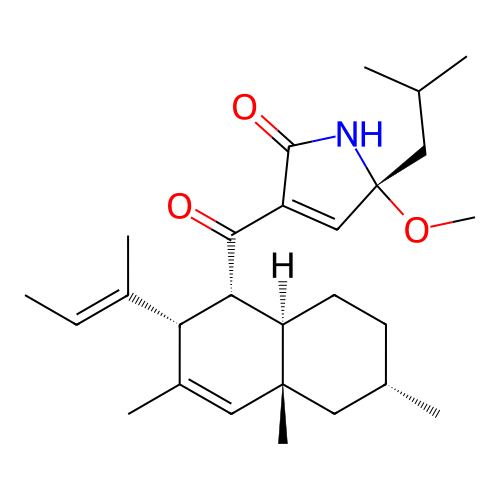 | SMILES | C/C=C(\C)/[C@@H]1[C@@H]([C@H]2CC[C@@H](C[C@@]2(C=C1C)C)C)C(=O)C3=C[C@@](NC3=O)(CC(C)C)OC |