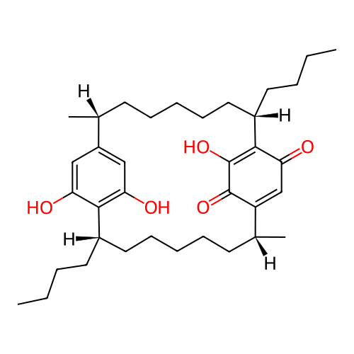 | InChI | InChI=1S/C36H54O5/c1-5-7-17-26-19-13-10-12-16-25(4)29-23-32(39)34(36(41)35(29)40)27(18-8-6-2)20-14-9-11-15-24(3)28-21-30(37)33(26)31(38)22-28/h21-27,37-38,41H,5-20H2,1-4H3/t24-,25-,26+,27+/m1/s1 |