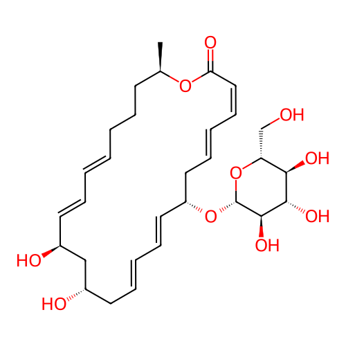| SMILES | C[C@@H]1CCC/C=C/C=C/[C@@H](C[C@H](C/C=C/C=C/[C@H](C/C=C/C=C\C(=O)O1)O[C@H]2[C@@H]([C@H]([C@@H]([C@H](O2)CO)O)O)O)O)O |
